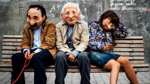 “Solitudes” nos presenta una historia que, a través del humor, ahonda en la soledad y la incomunicación de los miembros de una familia. El mismo equipo creativo de la premiada "André y Dorine" ha puesto en pie un nuevo trabajo de teatro de máscaras que, sin una sola palabra, resulta todo lo contrario a inexpresivo. El protagonista de Solitudes es un anciano que se siente incomprendido porque su vida es prácticamente una espera y ya sólo desea cosas sencillas. Cosas tan simples, que los demás no llegan a valorar su verdadera importancia. Un viaje por universos cotidianos que, combinando la gravedad con la sonrisa, conmueve, sorprende e invita a la reflexión.