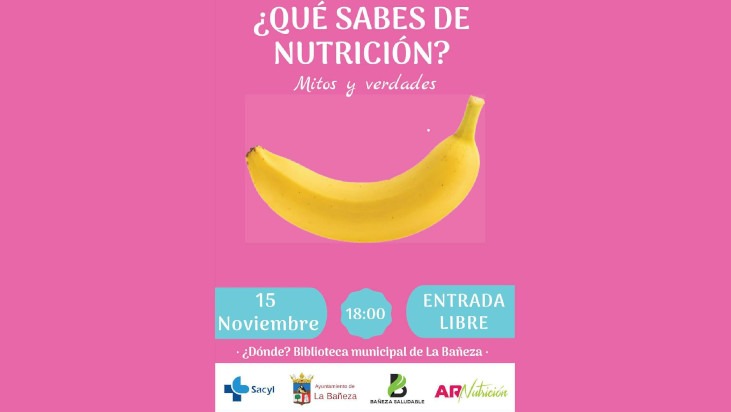 Llega a La Bañeza de la mano de AR-Nutrición una charla organizada por el Centro de Salud bañezano a rebatir "¿Qué sabes de nutrición?" donde se desmentirán ciertos mitos en la Biblioteca Municipal a las 18:00 horas, con entrada libre.