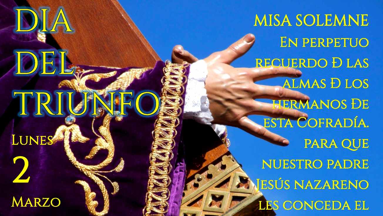 El primer lunes después del Ángel, día 1 de marzo y como viene siendo tradición, se celebra la festividad del Triunfo de la Cruz. Dicha efeméride se viene desarrollando desde tiempo inmemorial y así se refleja en la práctica totalidad de los antiguos documentos que posee la Hermandad.