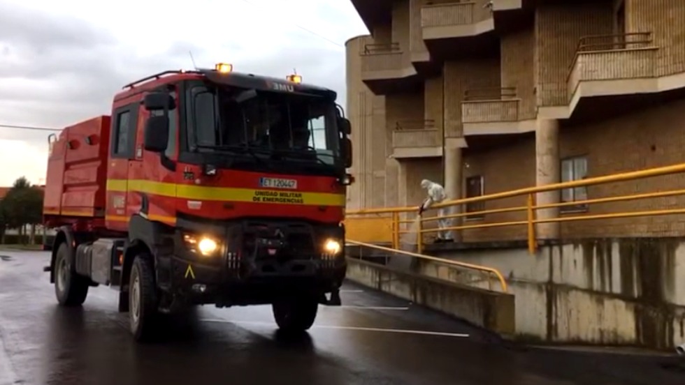 El viernes, un camión del Parque Móvil de la Diputación de León, especialmente adaptado para tal fin, procedió a desinfectar diversas calles de La Bañeza y el Centro Asistencial Nuestra Señora del Valle, siendo auxiliado por un vehículo de la Policía Local. Dos días más tarde y ya en la mañana de ayer domingo, varios efectivos de la Unidad Militar de Emergencias procedentes de la Base Conde de Gazola ubicada en la población de El Ferral del Bernesga, se desplazaron a nuestra ciudad para desinfectar nuevamente los exteriores de la Residencia de Mensajeros de la Paz, así como varias dependencias de su interior.