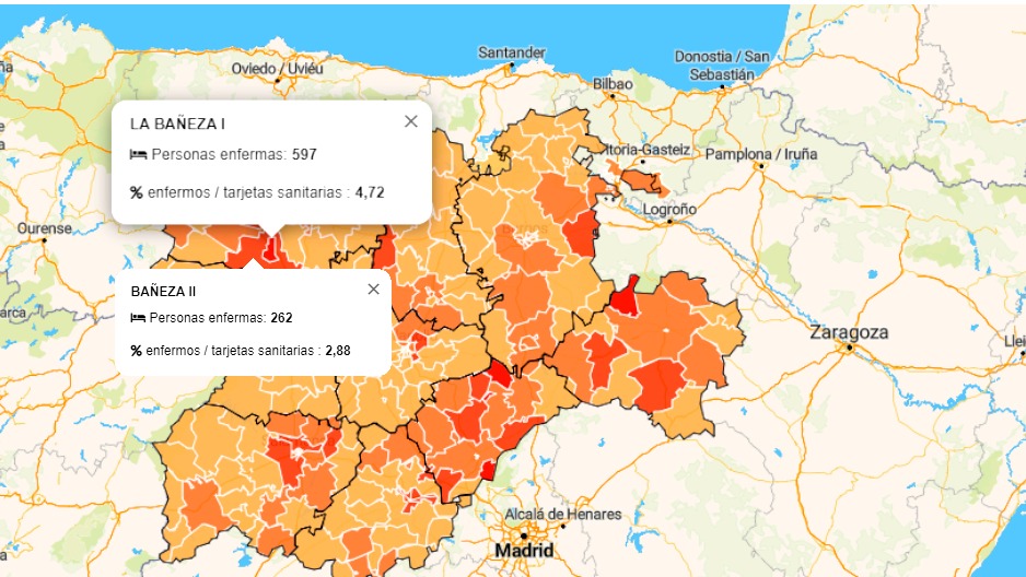 Unos datos que continúan siendo altos, 597 infectados en la Zona Básica de Salud de La Bañeza I en la cual se engloba la localidad bañezana junto con varios municipios de la comarca y luego la Zona Básica de Salud de La Bañeza II con 262 infectados, en la cual se agrupan gran parte de los municipios de la comarca.