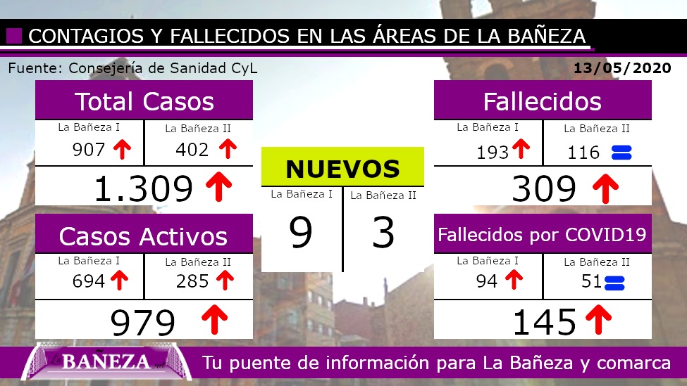 En cuanto a los datos de mortalidad, en las últimas horas comunican un fallecido en La Bañeza I el cual dió positivo en COVID-19.