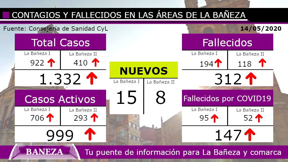 De estos 23 posibles casos, 20 se incrementan en los casos activos, los cuales se entiende que refleja las personas que se encuentran aún enfermas, según el registro de su historia clínica, de esos 20, 12 son en La Bañeza I y 8 en La Bañeza II.
