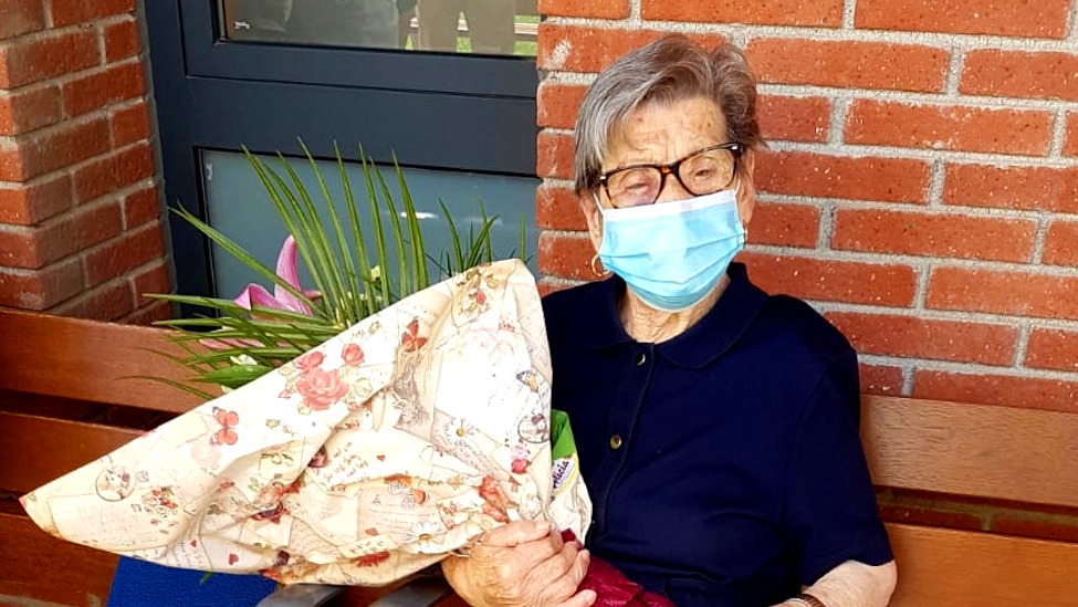 Florinda Blanco Alvarez, así es como se llama la última centenaria del Páramo, quien cumplió tan redonda cifra unos días antes de decretarse el estado de alarma, el día 7 de marzo. El Ayuntamiento, que ya tenía encargada la placa para la fecha, no ha podido hacerse entrega hasta ayer, cuando miembros de la corporación local y la propia alcaldesa se han acercado a hacer entrega de la placa y un ramo de flores, como recuerdo de tan importante día.