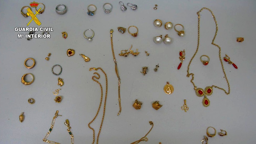 En el momento de la detención se le intervino el cordón de oro sustraído, que fue entregado a su legítimo propietario, así como multitud de joyas (anillos, pendientes, pulseras, colgantes,..) cuya procedencia se está investigando.