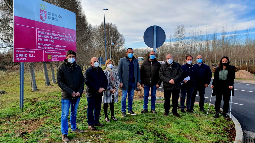La Diputación de León ha invertido 451.316 euros en el ensanche y mejora de la carretera LE-5501, que une Villanueva de Carrizo y Alcoba de la Ribera. El tramo, de 3.360 metros de longitud, tenía un ancho de plataforma de cinco metros que dificultaba el cruce simultáneo de dos vehículos, por lo que se ha ampliado hasta los seis metros y medio con dos carriles de tres metros cada uno. Además, se ha renovado el firme con mezcla bituminosa en caliente sobre zahorra artificial, se ha mejorado el antiguo drenaje de la carretera y se ha renovado tanto la señalización como el balizamiento del tramo.