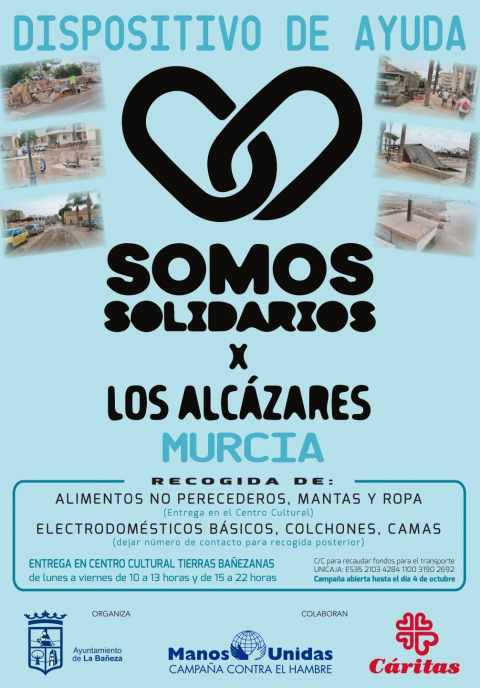 El Ayuntamiento de La Bañeza, en colaboración con Cáritas Interparroquial, Manos Unidas y Cáritas Diócesis de Cartagena, ha puesto en marcha una campaña para ayudar a los damnificados por la DANA (Depresión Aislada en Niveles Altos), en la localidad murciana de los Alcázares.