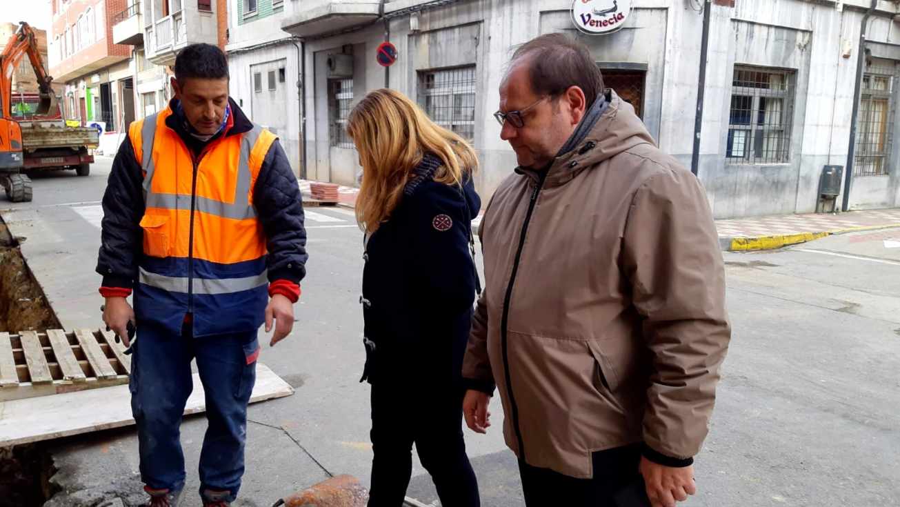 El pasado viernes el Alcalde de La Bañeza, Javier Carrera, acompañado por la Concejala de Obras, Lorena Calderón, efectuaron una visita a las obras de la Calle Escultor Rivera, que se encuentran actualmente en un avanzado estado de ejecución.