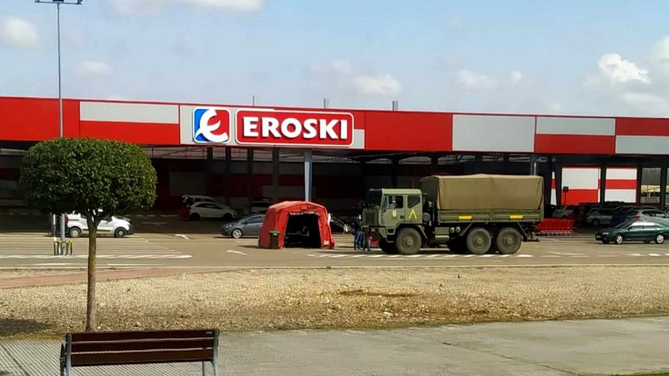 Esta mañana la Unidad Militar de Emergencias (UME) ha abierto una base de operaciones en La Bañeza, que estará situada en el aparcamiento de un conocido hipermercado de nuestra ciudad, con acceso directo a la Nacional 6. Desde este punto se coordinarán todas las operaciones de control, limpieza y desinfección que se lleven a cabo durante los próximos días en las distintas poblaciones de nuestra comarca.