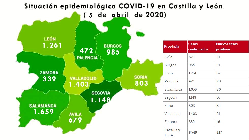 La Consejería de Sanidad ha confirmado a las autoridades sanitarias nacionales 417 nuevos casos más de infección por SARS-CoV-2, con lo que su número actual en la Comunidad es de 8.749 positivos.