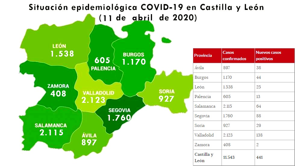 La situación recogida provincialmente puede consultarse en el archivo adjunto y de forma más amplia a través de este Enlace a la información actualizada sobre el nuevo coronavirus COVID-19 en Castilla y León en donde también están accesibles estadísticas sobre profesionales sanitarios afectados por la epidemia.