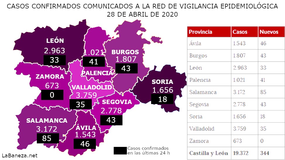 La situación recogida provincialmente puede consultarse en el archivo adjunto y de forma más amplia a través de este Enlace a la información actualizada sobre el nuevo coronavirus COVID-19 en Castilla y León, en donde también están accesibles estadísticas sobre profesionales sanitarios afectados por la epidemia.