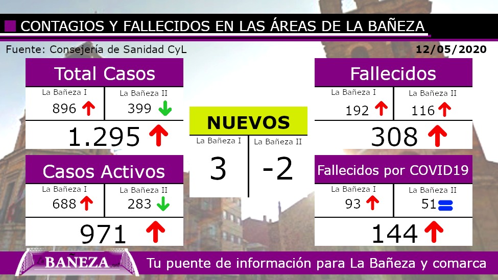 En la Zona Básica de Salud de La Bañeza II [CONTAGIADOS (399) CASOS ACTIVOS (283), FALLECIDOS (116) por COVID19 (51)] en los municipios;