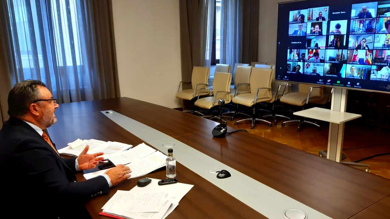 El presidente de la Diputación, Eduardo Morán, ha participado este martes en la Conferencia de Titulares de Alcaldías y Presidencias de Diputación convocada por la Junta de Castilla y León en la que ha reiterado la exigencia de fondos extraordinarios por parte de la administración autonómica a las instituciones provinciales y locales para hacer frente a la situación derivada de la crisis sanitaria del COVID-19, sobre todo en ámbito social.
