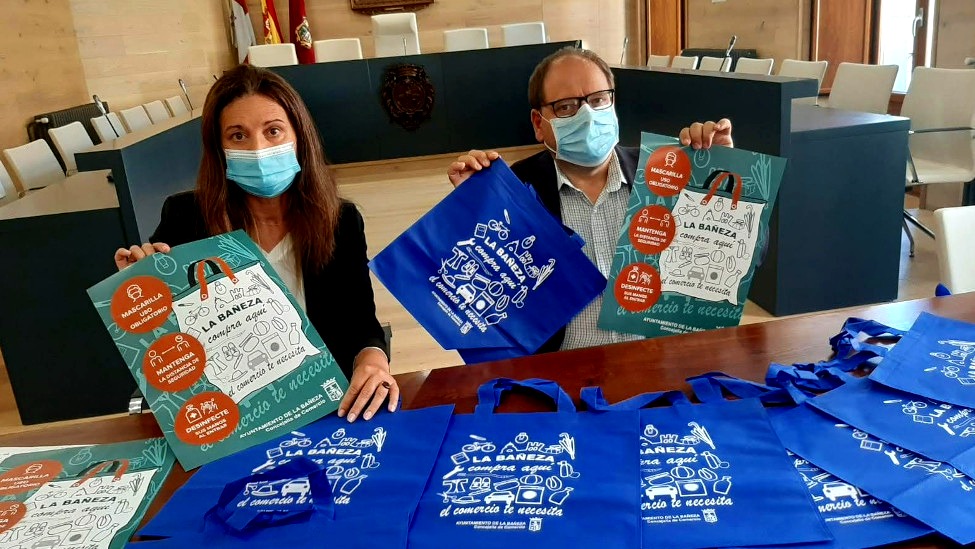 Durante la mañana de hoy, martes 25 de Agosto, desde el Ayuntamiento de La Bañeza han presentado las bolsas de tela que se repartirán en los comercios bañezanos, 10.000 bolsas reutilizables en total serán repartidas por los comercios locales para que regalen a sus clientes, 50 bolsas por establecimiento.