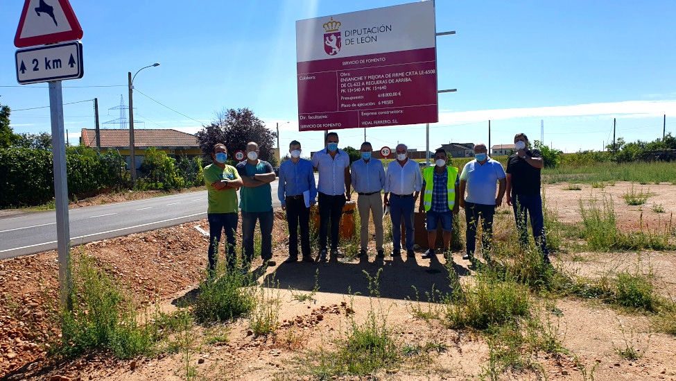 La Diputación de León ha invertido 420.000 euros en el ensanche y mejora del firme de la carretera LE-6508 que une la carretera autonómica entre León y La Bañeza y la localidad de Regueras de Arriba. En concreto, se ha actuado en un tramo de algo más de dos kilómetros (2.100 metros), desde la intersección con la citada carretera autonómica hasta el inicio de la travesía de la localidad. Los trabajos han consistido en la ampliación de la plataforma por ambos lados, pasando de una anchura media previa a la actuación de cinco metros a los 8,50 actuales, de los cuales seis son de calzada de pavimento asfáltico, uno de arcén pavimentado y 0,25 metros de berma en tierra a cada lado.