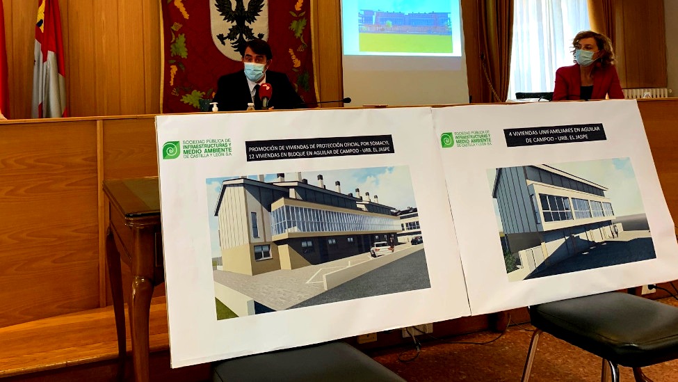 Una medida que ya ha comenzado en Aguilar de Campoo, Palencia, donde se presentaron las dos primeras promociones de construcción de un total de 19 viviendas de protección pública que la Junta, a través de la Sociedad Pública de Infraestructuras y Medio Ambiente de Castilla y León (Somacyl).