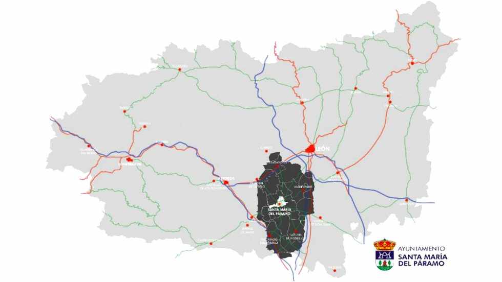 Con el objetivo de diseñar y actualizar material visual para sus nuevas Web y App municipales, el Ayuntamiento de Santa María ha encargado el diseño de 4 mapas sobre el término municipal, la comarca del Páramo Leonés y la situación del Municipio y la propia Comarca dentro de la provincia leonesa.