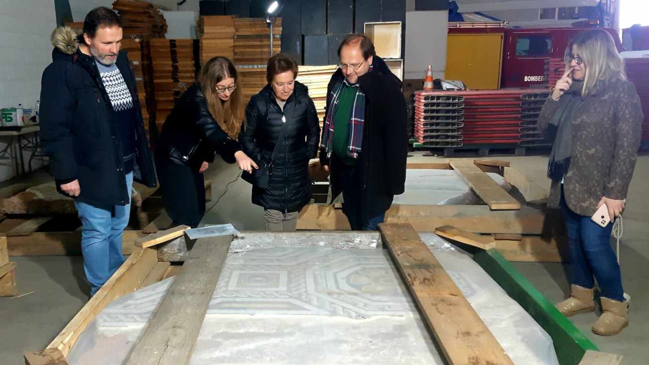 El Ayuntamiento de La Bañeza termina la primera fase de los trabajos de limpieza y consolidación del mosaico romano del siglo IV d. C., llevados a cabo por la Junta de Castilla y León con fondos europeos.