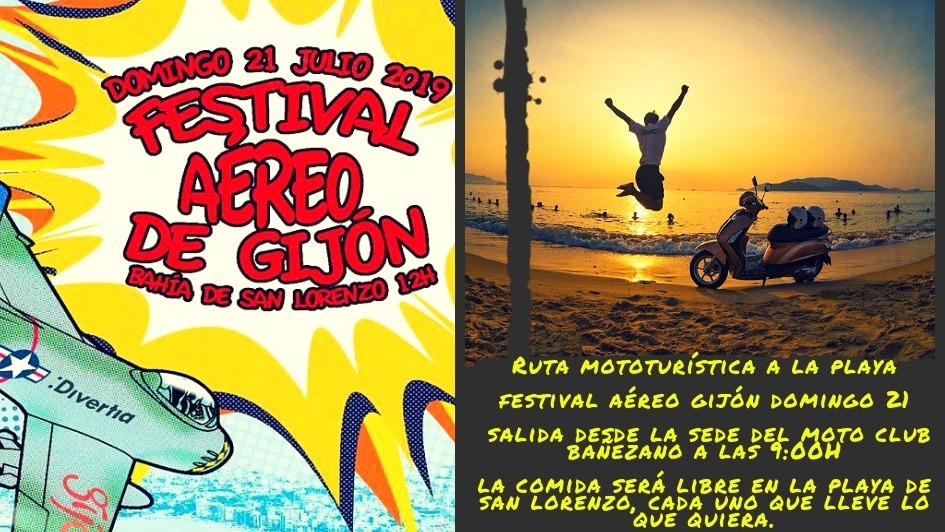 Una jornada en la que disfrutaran doblemente del día, rodando por bonitos parajes tanto leoneses como asturianos llegando a Gijón al mediodía para pasar una agradable jornada veraniega de playa mientras disfrutarán de la XIV edición del Festival Aéreo de Gijón, después realizarán la ruta de vuelta a casa.